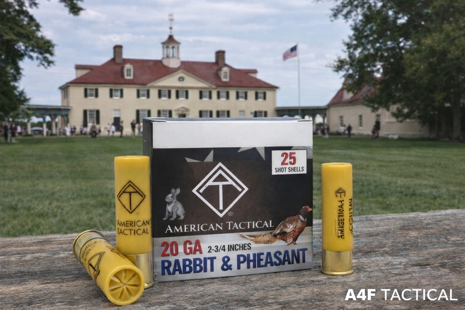 American Tactical 20 Gauge Rabbit & Pheasant shotshells are built for practical field use, offering a dependable load for small game and upland hunting. With 2¾” shells packaged in a 25-round box, this is the kind of ammunition made for days in the woods, brush lines, and open fields—where you want consistent performance, manageable recoil, and a load that fits the job. This image ties place and purpose together: American history in the background, and a classic hunting load in the foreground—because learning our past and enjoying the outdoors often go hand in hand.