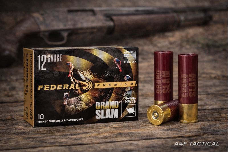 High-performance 12-gauge turkey shotshells delivering dense patterns and reliable knockdown power. Federal Grand Slam is trusted by serious turkey hunters for consistent results.