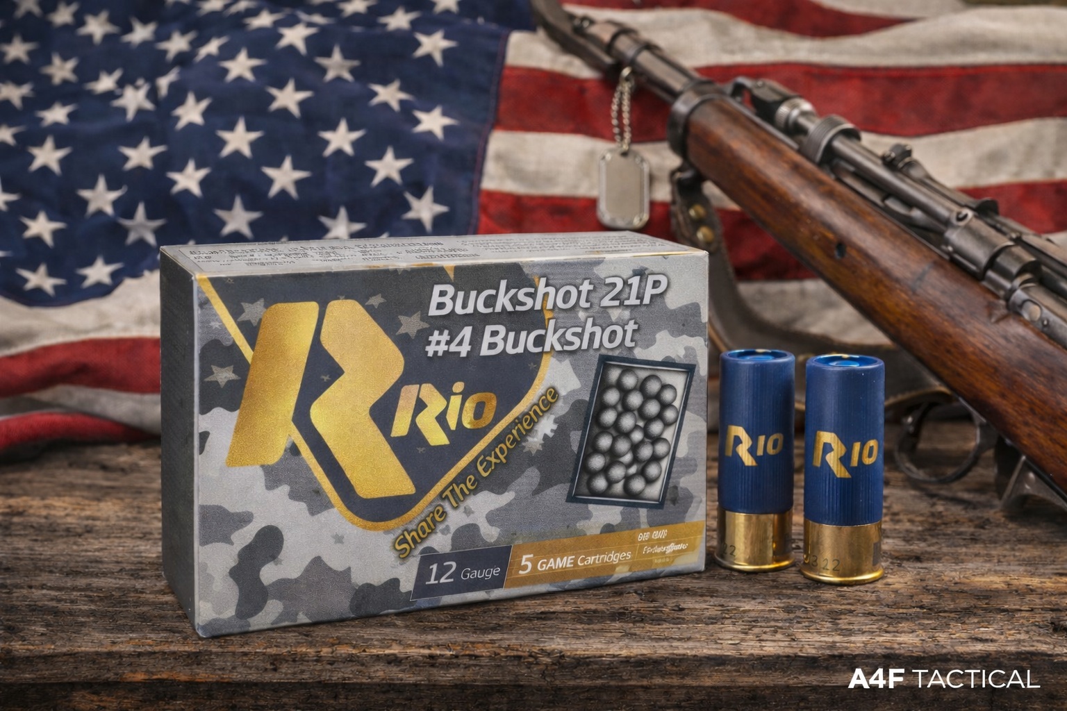 This image was created to reflect the spirit of American heritage, preparedness, and tradition. Set against a weathered workbench with an American flag in the background, the Rio Royal Buck #4 Buckshot represents reliability rooted in time-tested values. Though crafted with modern precision, the scene honors the legacy of those who relied on dependable tools to protect home, land, and family. It’s a tribute to strength, responsibility, and the enduring connection between craftsmanship and freedom.