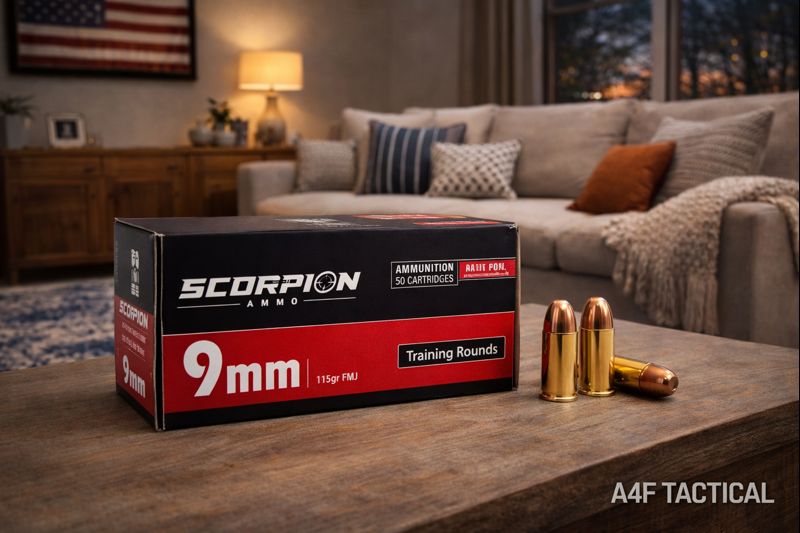 Scorpion Ammo 9mm Luger 115gr FMJ training rounds are engineered to deliver reliable feeding, consistent velocity, and clean performance during extended range sessions. This 9mm Luger load features a 115-grain Full Metal Jacket (FMJ) bullet, making it an excellent choice for high-volume practice and target shooting.