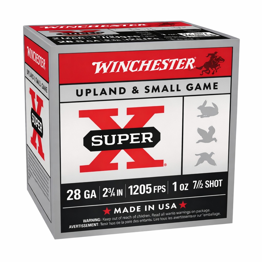 Winchester Super-X Game Load 28 Gauge #7.5 Shot 2¾” 1 oz 1205 FPS – 25 Rounds is a classic upland and small-game shotshell designed for consistent patterns, smooth recoil, and proven Super-X reliability.